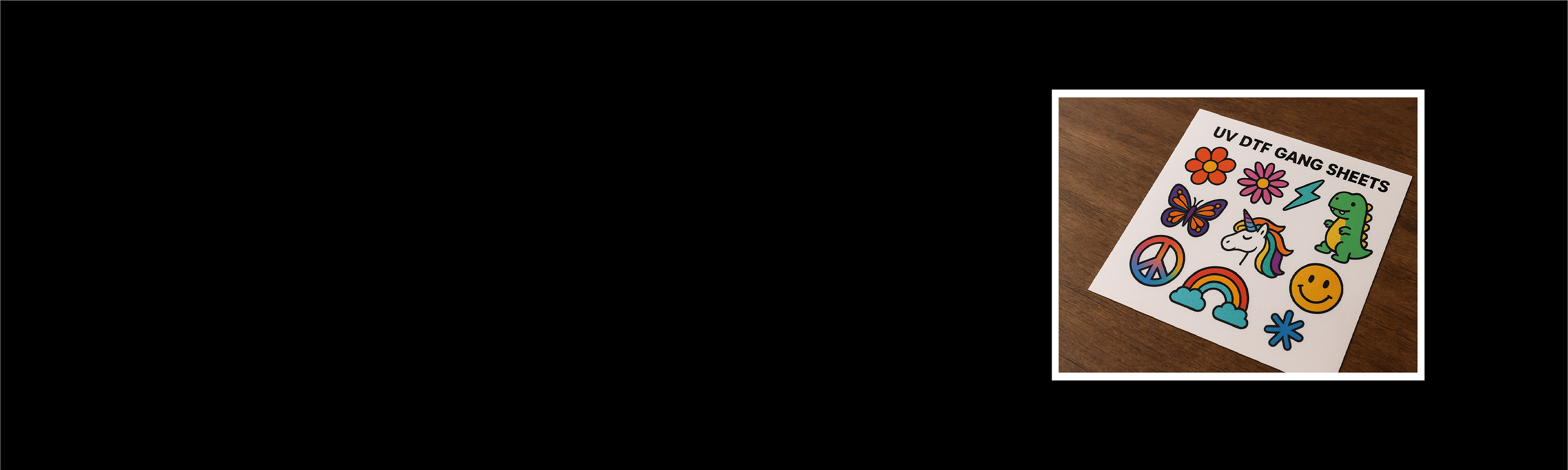 Our new DTF-UV printing gives you vibrant, durable, permanent stickers that adhere to nearly any hard surface — perfect for products, packaging, cups, bottles, signage, laptops, phone cases, and more. The possibilities are endless! Not recomended for vehicle paint.